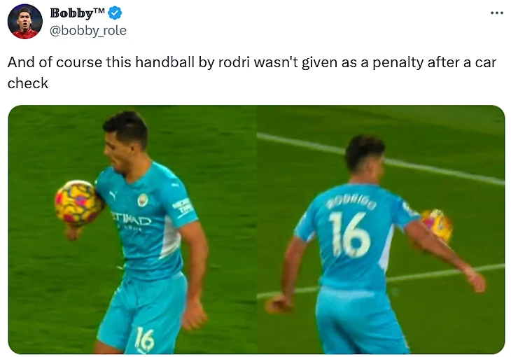 💭 «И, конечно, игра рукой Родри, за которую не последовало пенальти после проверки».