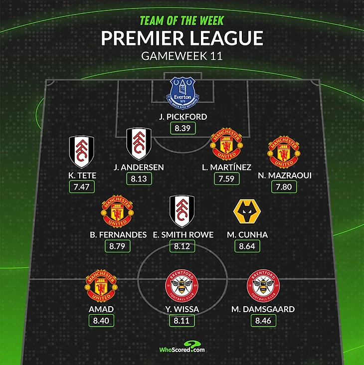 Наибольшее представительство получили «Фулхэм» и «Манчестер Юнайтед». «Манкунианцы» заработали сразу четыре места в сборной тура: Лисандро Мартинес, Нуссаир Мазрауи, Бруну Фернандеш и Амад Диалло.
