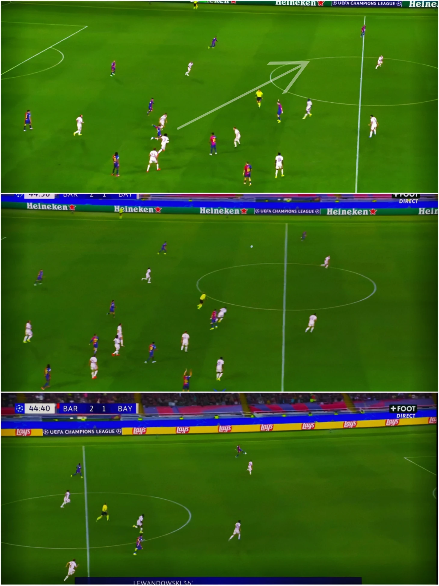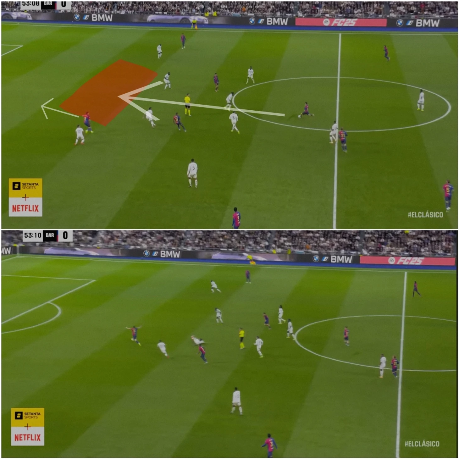 Касадо прекрасно ориентируется в пространстве, постоянно сканируя поле, он хорошо видит все возможные свободные зоны и коридоры для передач. В данной ситуации Касадо увидел, что центральные защитники «Реала» высоко выдернулись и оставили свои зоны, хавбек быстро сориентировался и вырезал передачу на вбегавшего в свободную зону Роберта Левандовски, после этого поляк вышел на рандеву с голкипером и забил дебютный гол в матче.