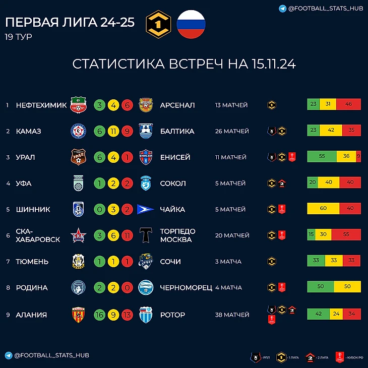 Статистика встреч команд первой лиги перед 19 туром