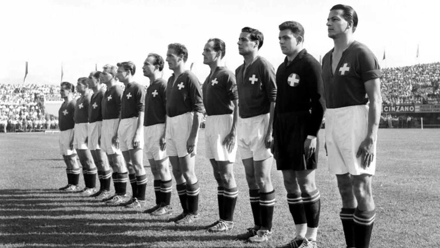 Начнем пожалуй с итальянцев. «Скуадра адзурра» в отличие от Германии приняла участие в ЧМ-50 и также квалифицировалась на мундиаль в Гельвеции. За год до начала Второй мировой войны Италия сумела не только добыть свое первое золото имени Дуче в родных стенах, но и защитить титул чемпионов мира в 1938-м во Франции. Что интересно: в обоих случаях они переиграли сборные бывшей Австро-Венгрии в чемпионских матчах; в 1934-м пострадала Чехословакия, а 4 года спустя – Венгрия. Для венгров серебро-38 стало вообще первым в истории их выступлений на ЧМ. Но на ЧМ-54 Италия угодила в одну группу с англичанами, хозяевами турнира и бельгийцами. Проиграв локальное дерби Швейцарии 1:2, Голубая Эскадра взяла верх над Бельгией – 4:1. Благодаря разнице забитых и пропущенных мячей они оказались выше швейцарцев. Но в пользу хозяев сыграло то, что в отличие от Италии они были несеяными, поэтому пришлось проводить переигровку за второе место в группе (первое заняли родоначальники футбола). Повторное дерби также завершилось в пользу швейцарцев, только убедительнее – 4:1. Италия покинула турнир уже после групповой стадии.