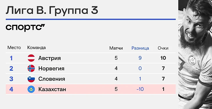 Казахстан и Андорра – единственные во всех четырех дивизионах, кто ни разу не забил. Исправиться еще можно против Норвегии в гостях, но шансов против Холанда и Эдегора мало. Нетрудно представить, что так и закончат с нулем.