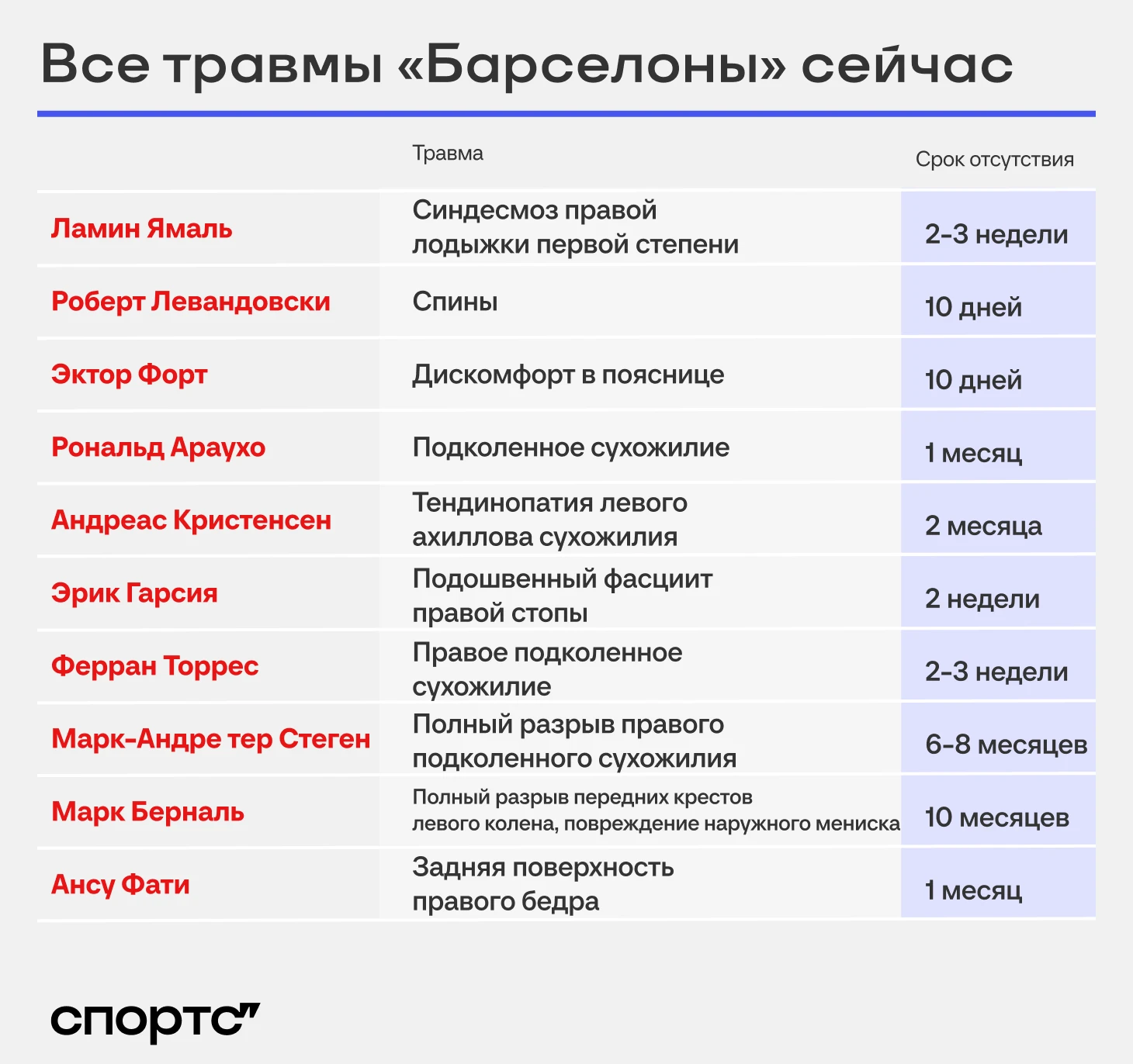 Ансу Фати не один такой. Прямо сейчас команда не может рассчитывать сразу на десятерых футболистов.