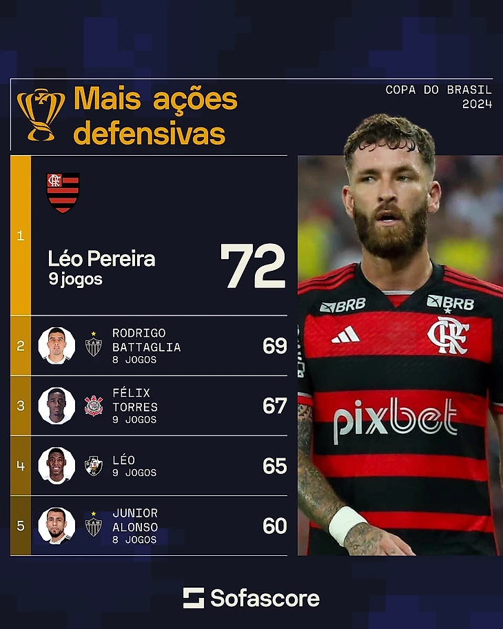 Ну и больше всего оборонительных действий у одного из теневых героев «Фламенго» Лео Перейры.