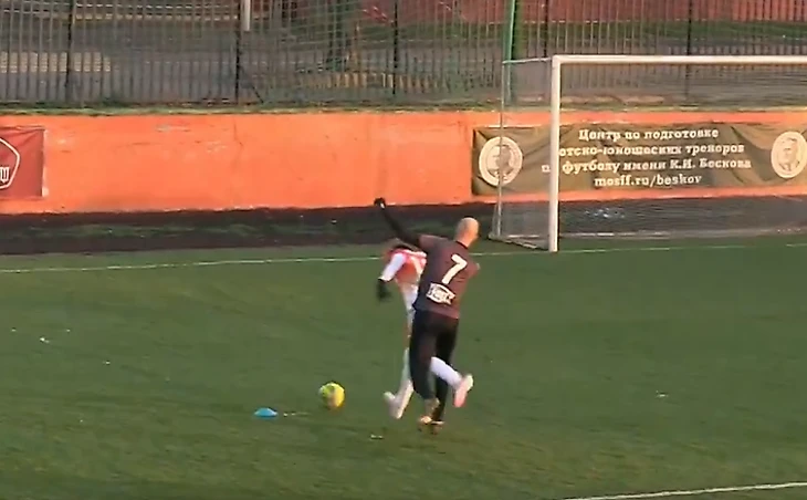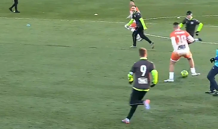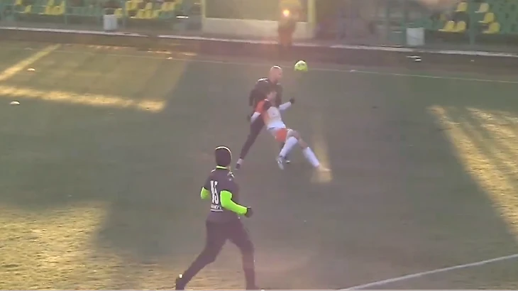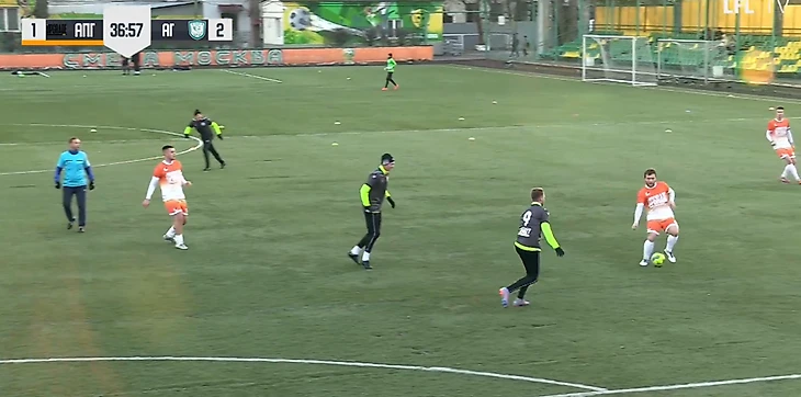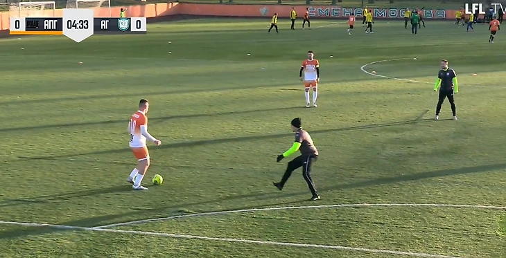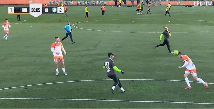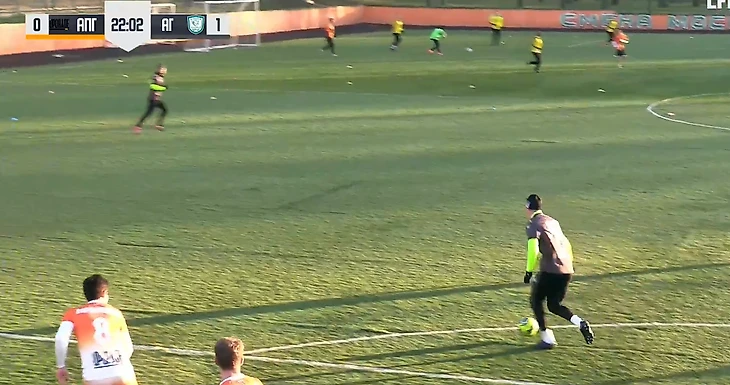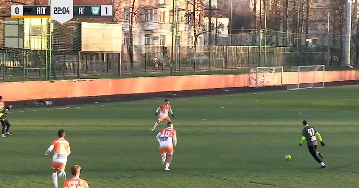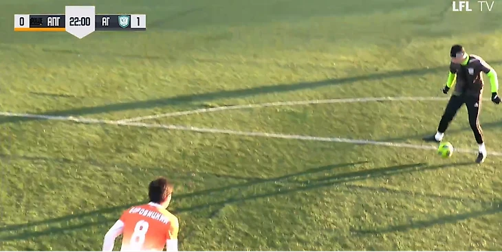 На 39-й минуте вратарь гостей выбрасывал мяч из штрафной на половину поля «Апгрейда», Баринов был без сопротивления на мяче.