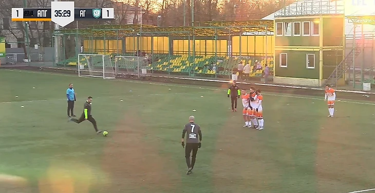На 36-й минуте вновь вперёд вышли гости: прострел со штрафного на дальнюю штангу…
