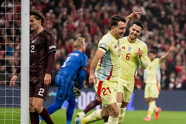● Испания разобралась с Данией неосновным составом – 2:1. На 15-й минуте датчане допустили нелепую потерю при попытке выхода из защиты. Микель Мерино перехватил мяч и активировал Айосе Переса. Микель Ойарсабаль предложил себя во вратарской и переправил мяч в сетку после аккуратной передачи партнера.