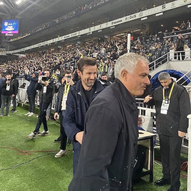 На 63-й «Фенербахче» забил второй – это сделал защитник Левент Мерджан, у которого всего девять минут в турецкой Суперлиге за сезон. Тут Моуринью уже не сдержался: легкой трусцой побежал к игрокам, чтобы поздравить Левента.