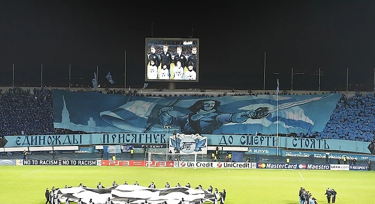 В начале матча я наблюдаю картину, которая меня поражает: полотно с изображением Императора Петра Великого. На ней фраза: «Единожды присягнув до смерти стоять».