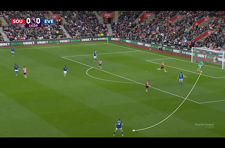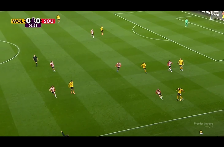 Посмотрите насколько быстро «Саутгемптон» садится в низкий блок после неудачной попытки прессинга.