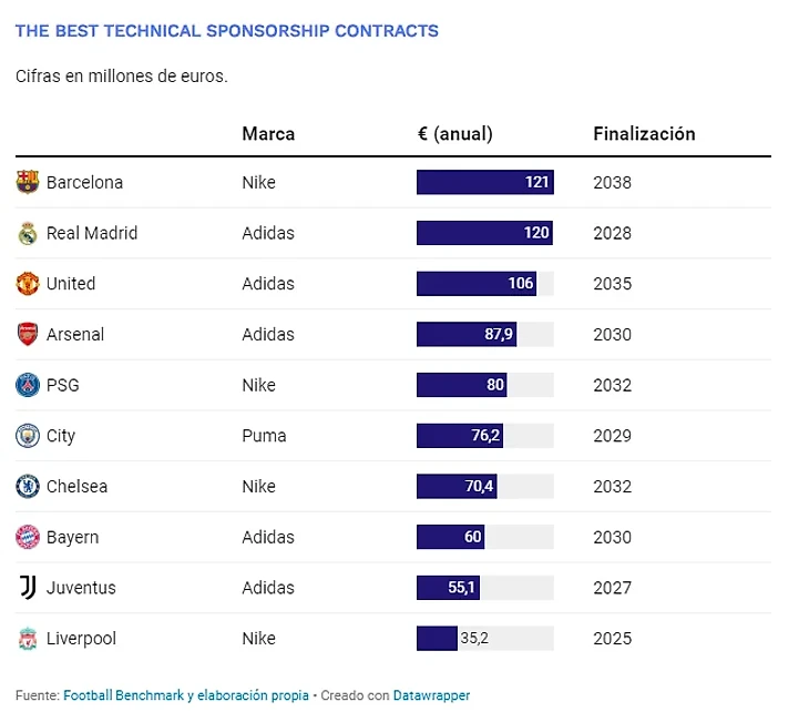 Самые прибыльные контракты с техническими спонсорами. Отрыв испанских клубов от конкурентов безумен