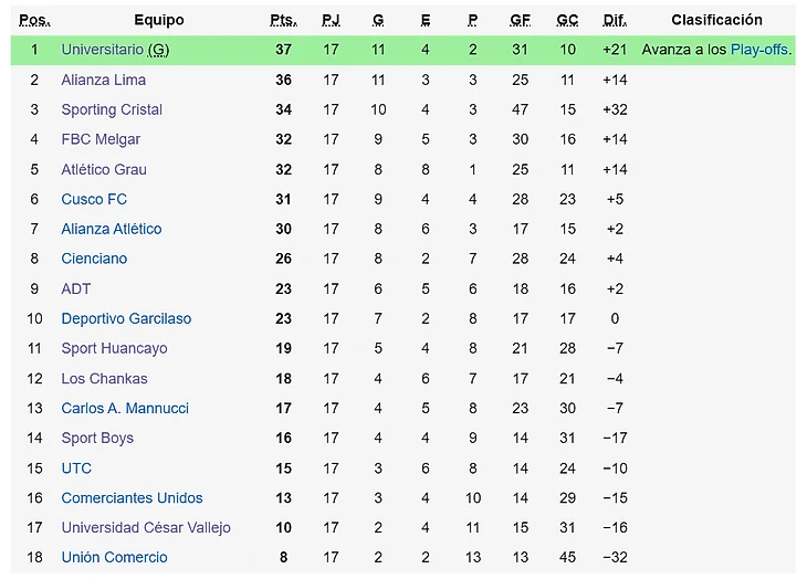 Клубы же, которые были в восьмерке, собрались под конец сезона. «Атлетико Грау» так и вовсе был одним из лучших клубов Клаусуры: они стали единственной командой, проигравшей лишь один матч во второй части сезона. Смена тренера взбодрила «АДТ». Клуб из Тармы набрал 7 из 12 возможных очков в последних турах. А еще отметился красивым голом в ворота «Спорт Бойз».