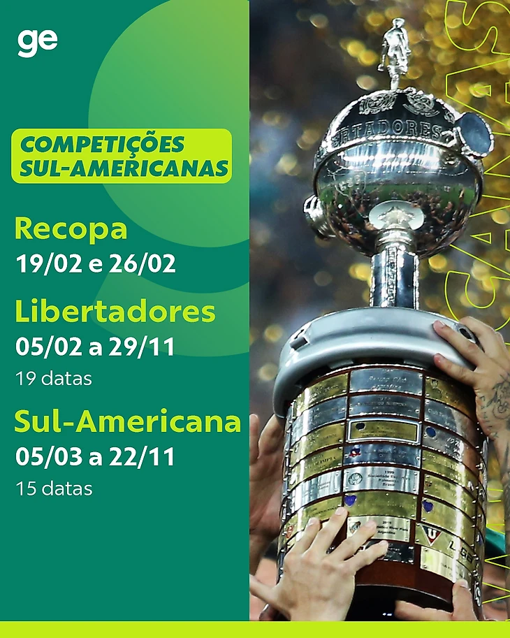 Рекопа, Суперкубок Южной Америки пройдет 19 и 26 февраля, квалификация к Либертадорес и Судамерикане стартует в начале февраля и марта соответственно.