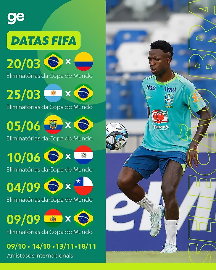 Календарь сборной на 2025 год. Как видите на спарринги места будут только в октябре-ноябре. При условии что Бразилия не займет 7-ое место в квалификации. Национальные турниры будут прерываться на даты ФИФА, между матчами сборных и клубов должно быть не менее 48 часов.