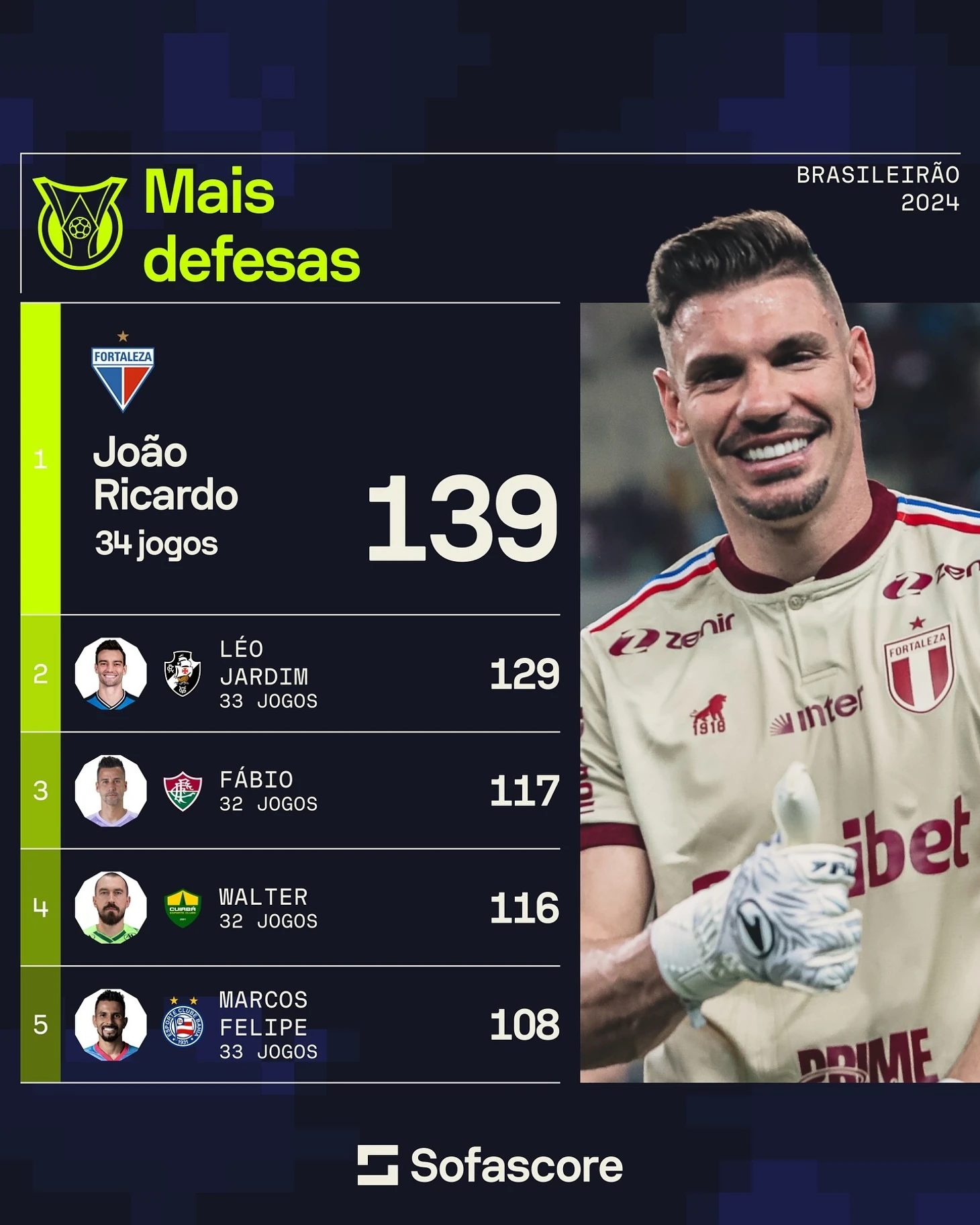 Высокое место «Форталезы» во многом заслуга Жоао Рикардо ,у него больше всех спасений.