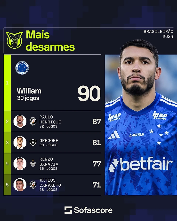 Больше всех мячей отобрал Виллиам из «Крузейро»