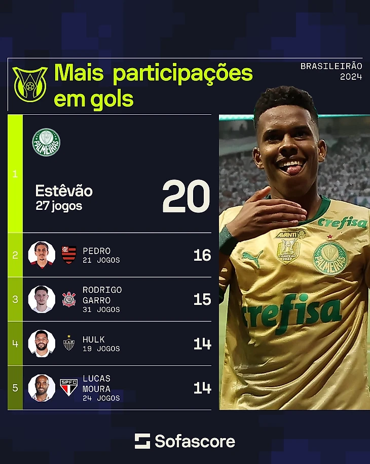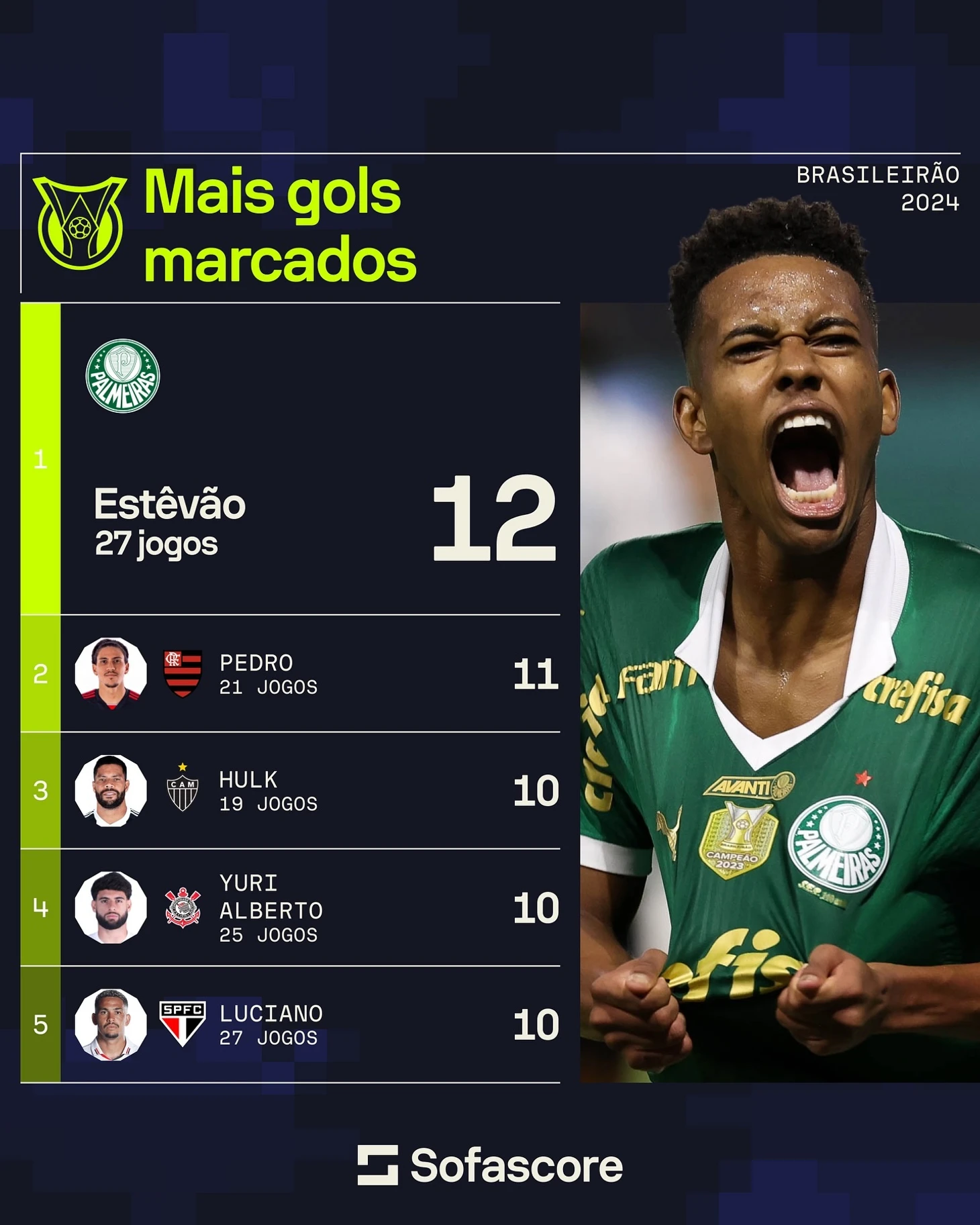 Лучшие бомбардиры. Эстевао обошел Педро.
