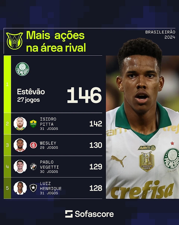 В чужой штрафной больше всех активничает снова 17-летний пацан из «Палмейраса».