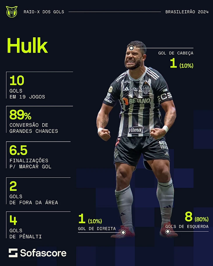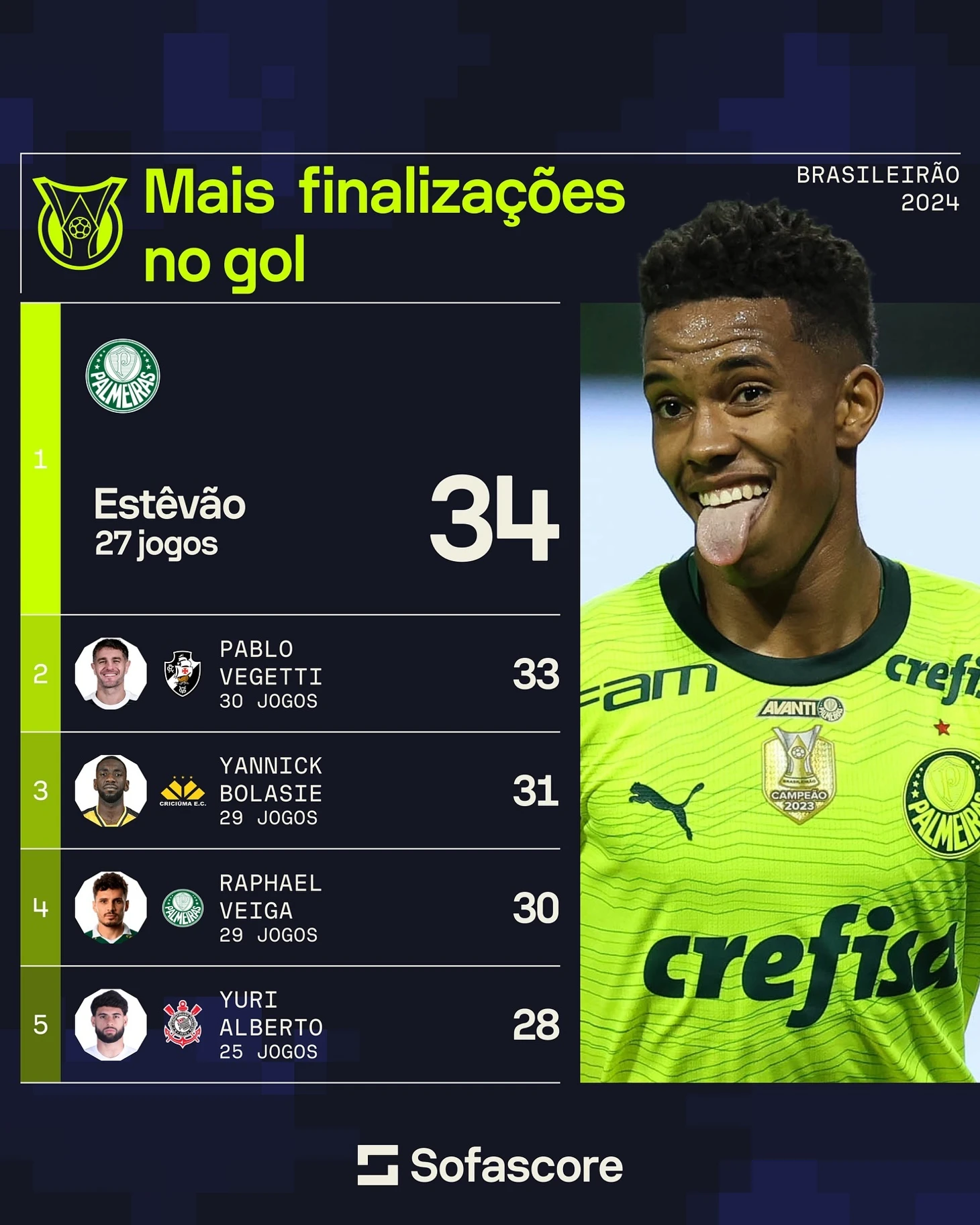 Чаще всех бьет по воротам..нет, не Халк, снова Эстевао.