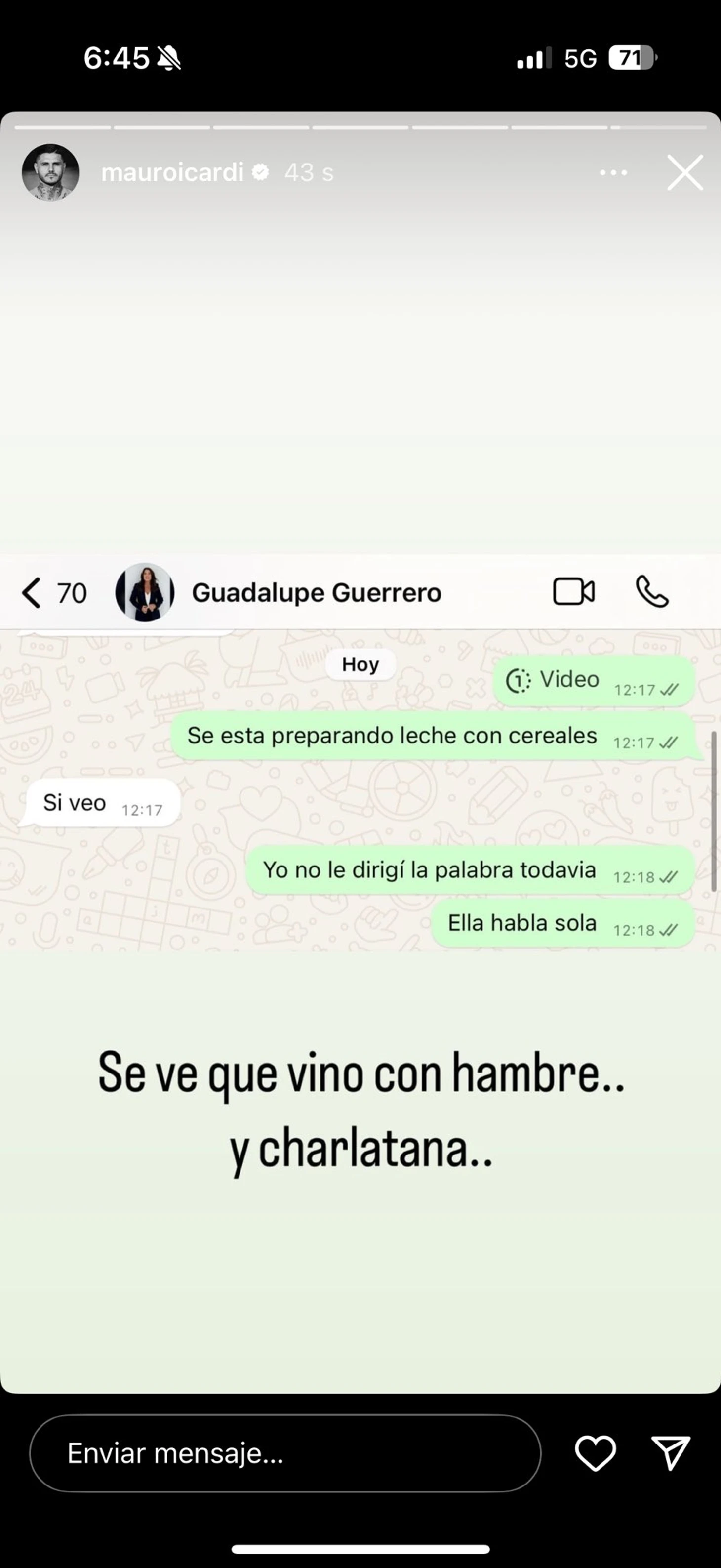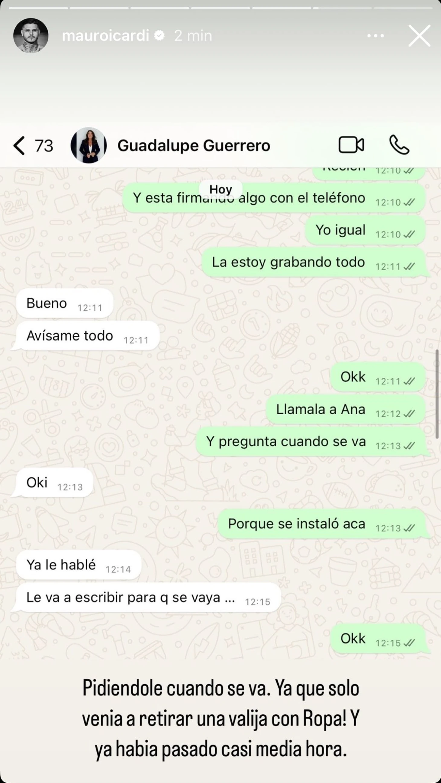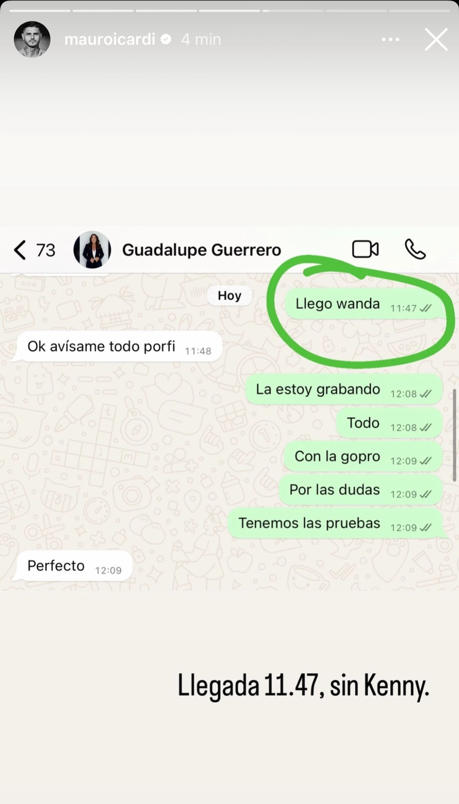 В 11:47 спортсмен сообщил одному из своих адвокатов Гваделупе Герреро, что Нара прибыла в дом. «Я это записываю, все на GoPro, на всякий случай, чтобы у нас были доказательства», — заверил он и показал скриншоты чатов с адвокатом.