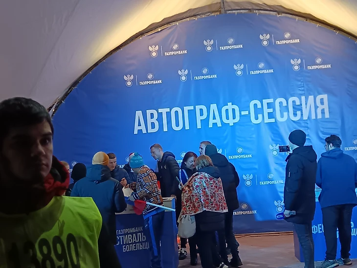 На территории стадиона проходила широко анонсируемая автограф-сессия с участием звезд футбола. В ней должны были участвовать Денис Глушаков, Павел Погребняк, Евгений Алдонин и Валерий Есипов. Мы все семье встали в очередь и ждали, очередь была очень большая. Параллельно мы смотрели концерт и веселились, так как было очень холодно, без движения получили бы наверное обморожение, хотя мы и так в итоге заболели. В общем звезд ждали полчаса или больше. Очередь двигалась очень медленно, а я хотел еще купить еды с чаем на матч. Затем часов в 6 вечера у меня кончилось терпение и я решил пойти за едой, но жена знала как я люблю московский Спартак и что Денис Глушаков последний капитан Спартака, который выиграл чемпионат в 2017 году. Я собирался стоять дальше а она бы пошла в фуд-корт одна. Но тут я вижу что люди стоят, где выход и смотрят на что-то, фотографируют, некоторые уходят. Мне стало любопытно, Я тоже туда подошел, и какое же было мое удивление когда я обнаружил что только два человека раздают автографы, это Павел Погребняк и Евгений Алдонин. В этот момент главная кричалка про Глушакова вырывалась из меня наружу, но я сдержался. Ни организаторам, ни ведущим не было объявлено о том, что они не приедут, это было большая подстава, я морозилки и себя и семью почти час чтобы в итоге уйти ни с чем. За это большой минус, обманывать нехорошо, это я сейчас к пресс-службе РФС обращаюсь или кто там за это отвечал.