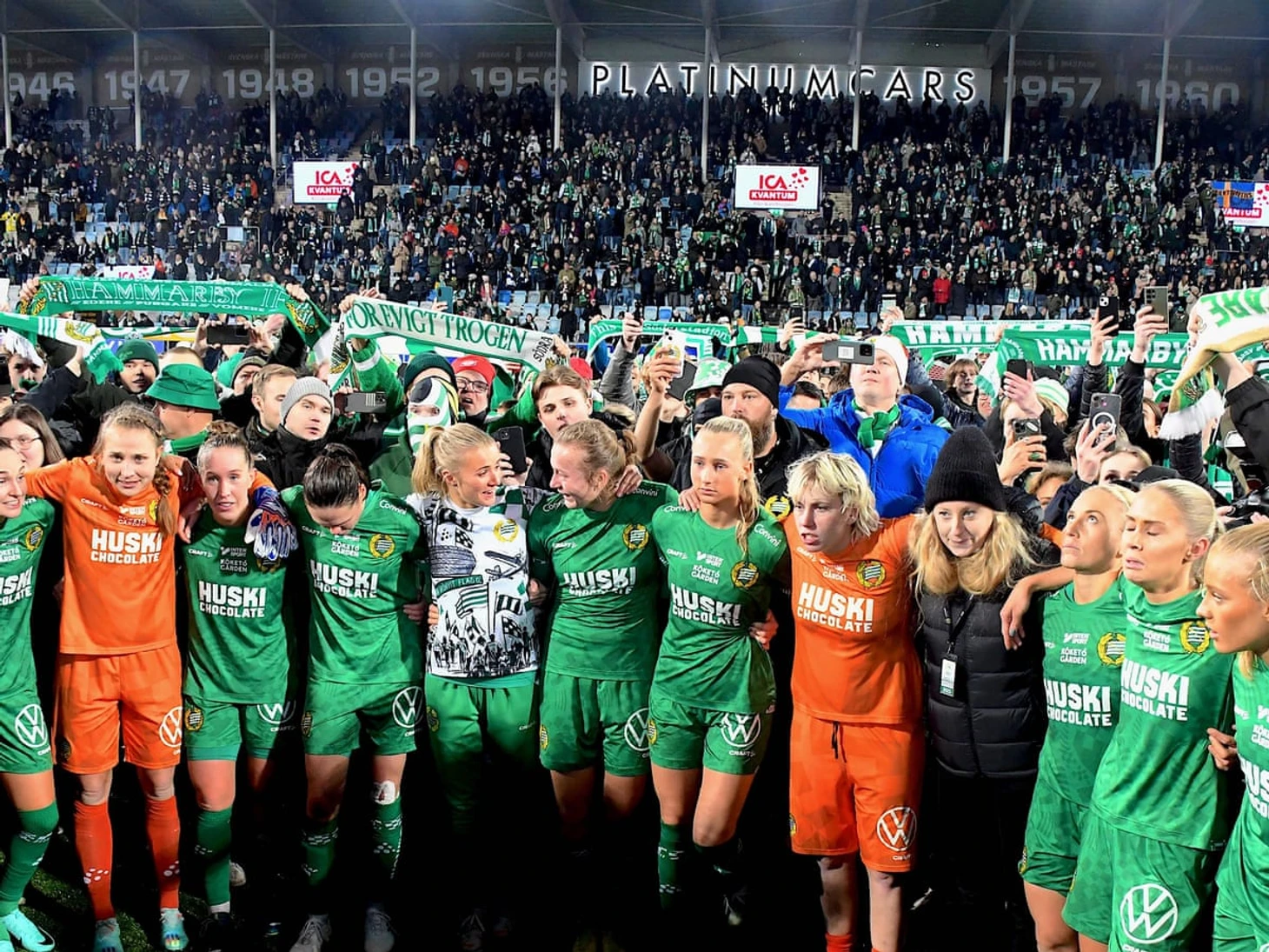 Это чемпионство позволило футболисткам «Хаммарбю» попасть в квалификацию Лиги Чемпионов, где шведки в тяжелой борьбе одолели португальскую «Бенфику» (дома проиграли 1:2, а в Лиссабоне выиграли 2:0 с победным голом на 5-й добавленной минуте) и пробились в групповой этап турнира. Тут важно отметить, что женская ЛЧ проходит по старому формату, когда команды-участницы делятся на группы по 4 команды. Таким образом «Хаммарбю» оказался в компании австрийского «Санкт-Пельтена», «Барселоны» и «Манчестер Сити». Австриек шведки дома уверенно обыграли, но затем в гостях проиграли «Ман Сити» 0:2 и сгорели 0:9 «Барселоне». Для того, чтобы рассчитывать на продолжение борьбы за плей-офф, «Хаммарбю» жизненно важно было обыграть в родных стенах «Манчестер Сити». Фанаты мужского «Хаммарбю», понимая важность этого поединка, снова массово пришли на «Теле-2 Арену» и подготовили красочный перфоманс, как уже неоднократно это делали ранее на матче женской команды.