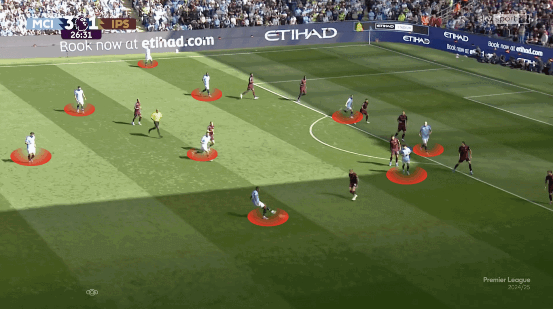 Если вы часто смотрите АПЛ, то без проблем узнаете эту картину. 10 игроков «Ман Сити» на чужой трети (или близко к ней) в поиске вариантов, соперник вжат, но выглядит стойко.