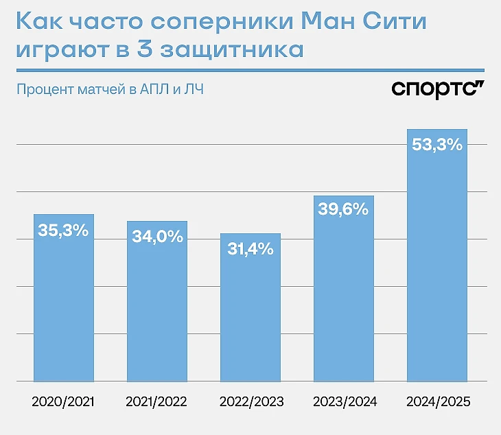 Можно возразить, что порой так страдают все большие клубы, которые сталкиваются с автобусами. Но нет. «Ман Сити» этой осенью упирался в такие стены чаще остальных. Никто в АПЛ и топ-5 не полирует широкую оборонительную линию настолько высоко.