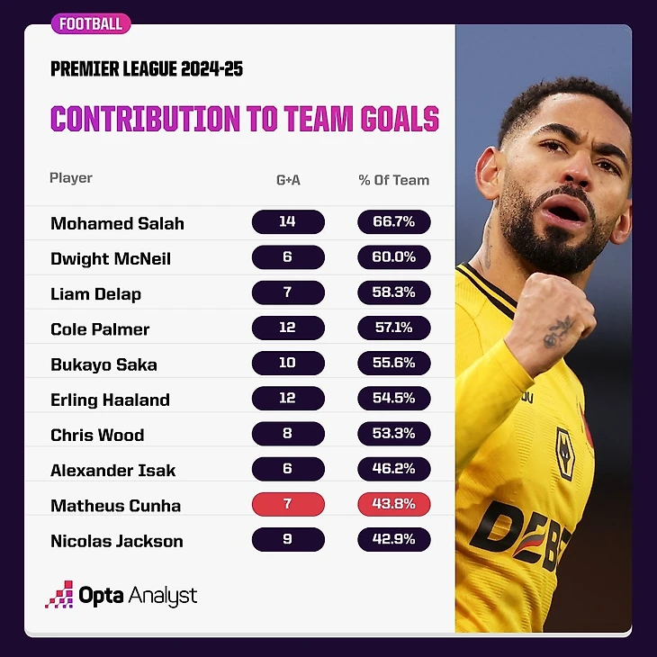 Дуайт Макнил набрал шесть очков по системе «гол+пас», при этом он принял участие в реализации 60% голов «Эвертона». Похожая ситуация у Лиэма Делапа из «Ипсвича», который повлиял на 58,3% голов своей команды.