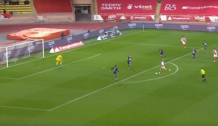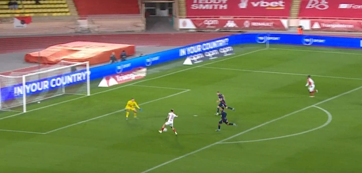 Но обработка мяча заняла время, этим воспользовался защитник «Бреста» Кенни Лала, да еще и выбил мяч у Головина без углового для «Монако».