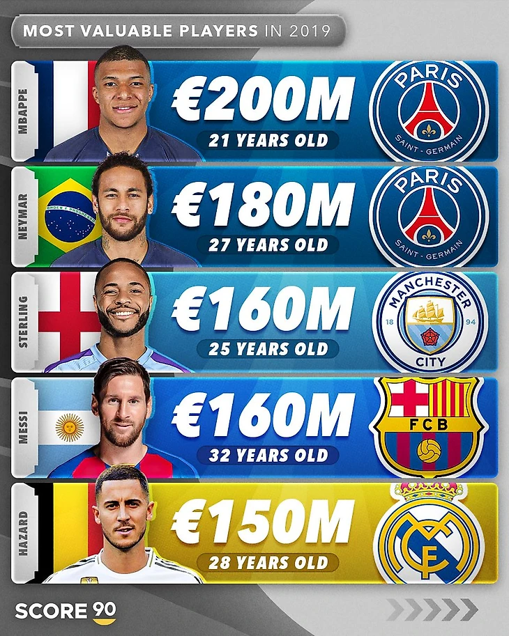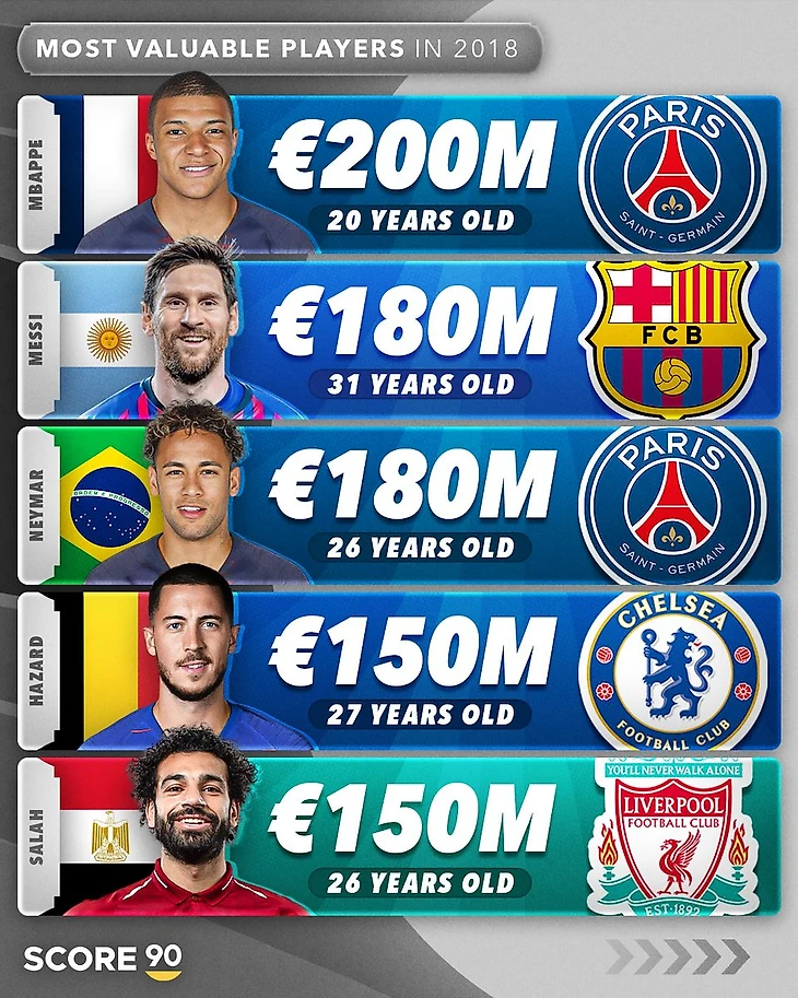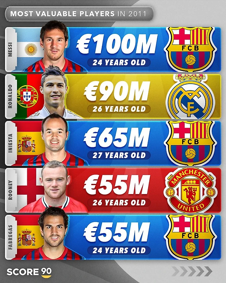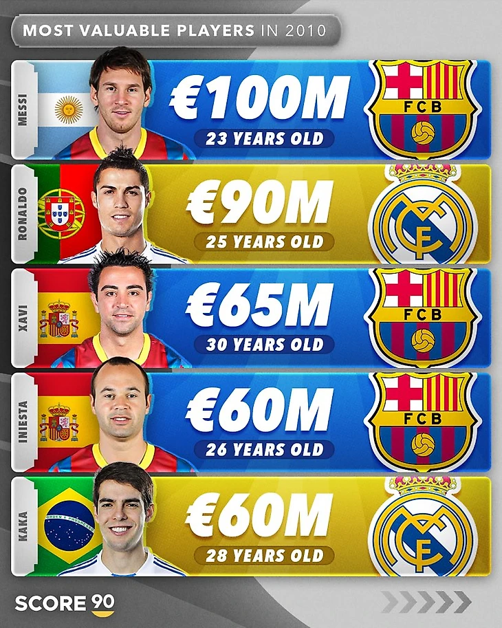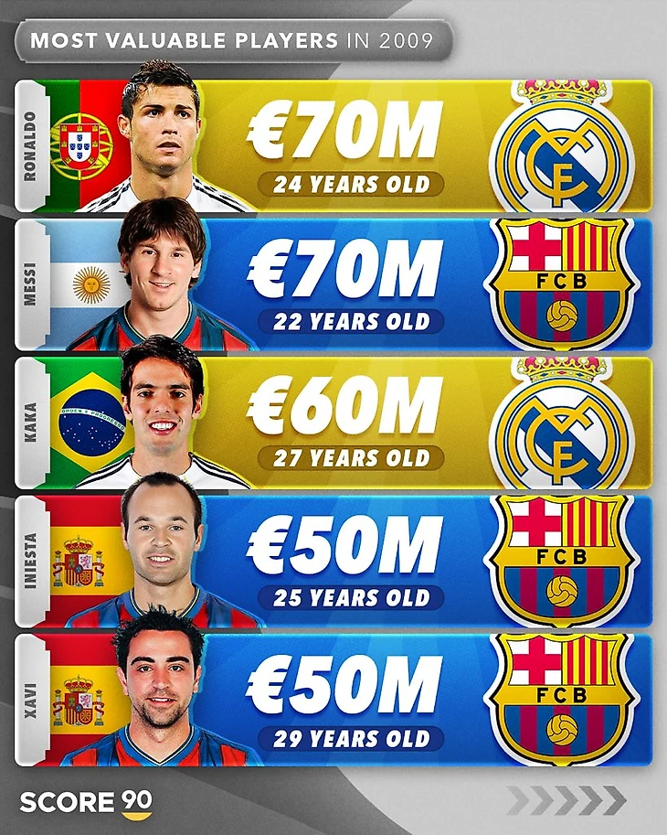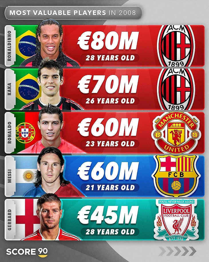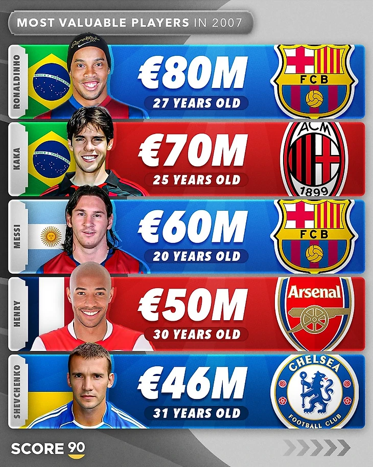 Футбол — это не только страсть миллионов, но и огромные деньги. Ежегодно трансферные рекорды в футболе переписываются, а имена самых дорогих игроков мира становятся символами новой эпохи. Взглянем, как менялась пятерка самых дорогих футболистов, начиная с 2007-го.