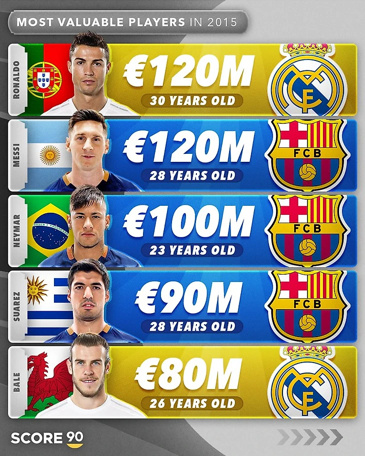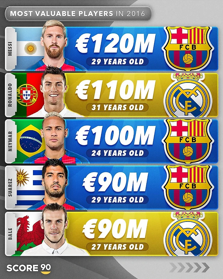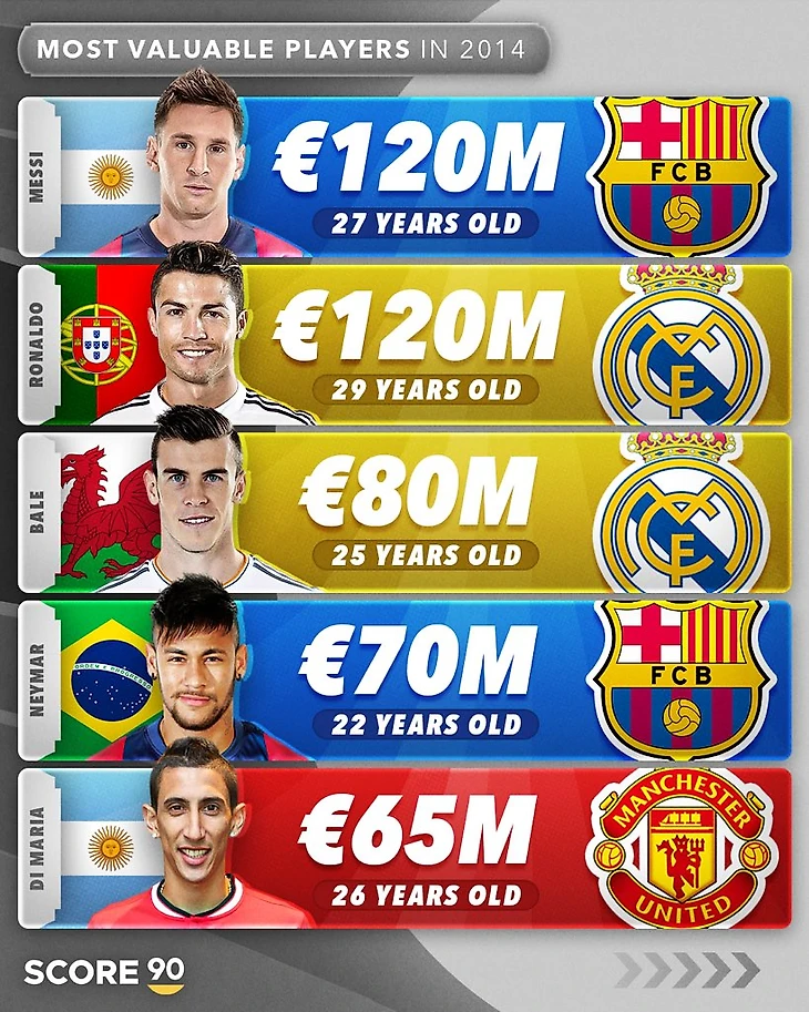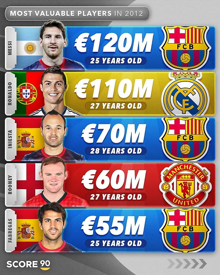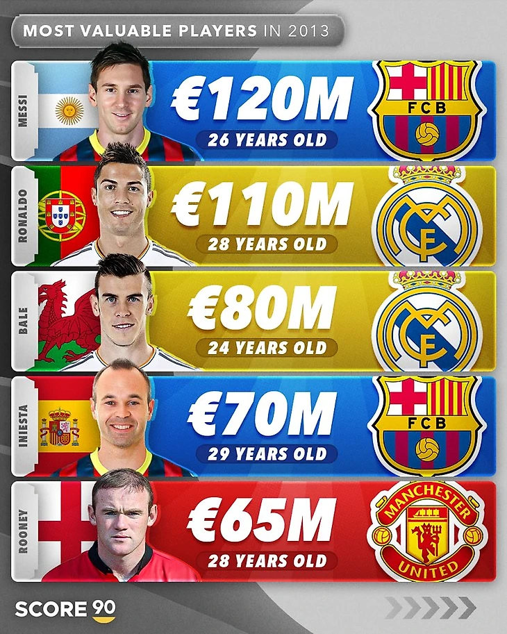 Т0П-5 самых дорогих игроков, начиная с 2007 года. Здесь были даже Джеррард и Фабрегас