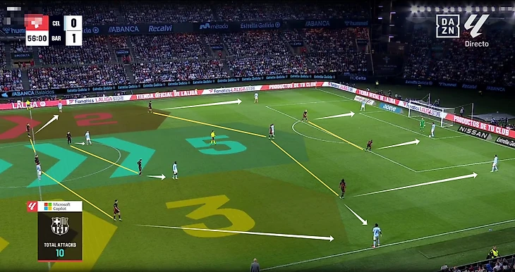 До матча писал, что будет интересно наблюдать за действиями каталонцев в данной стадии. Фактически команда из Виго комбинировала несколько схем, но в начальной стадии обычно была фиксировнная ситуация. Вот как «Барселона адаптировалась».
