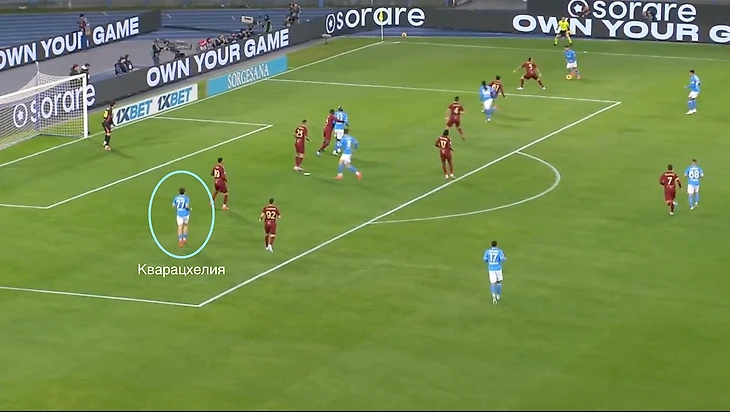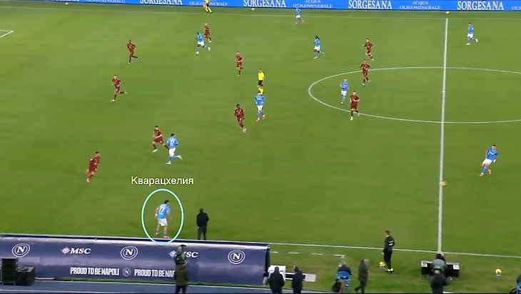 Что касается левого фланга Кварацхелии. Там при развитии атак было куда меньше комбинаций, относительно активного в этом плане правого фланга.