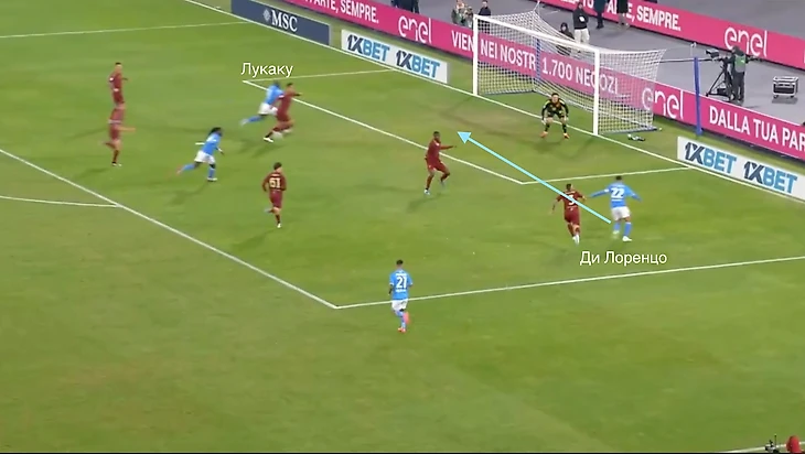 К примеру, быстрая вертикальная атака по правому флангу, где здорово под заброс от Ди Лоренцо открылся Политано, оставив своего оппонента в лице Анхелиньо позади себя.