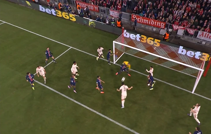 На 37-й минуте Йозуа Киммих подал угловой, а Матвей замешкался на линии. Попал под Мусиалу, тот встал прямо перед ним. Сафонов потом возмущался, судьи проверяли на фол.