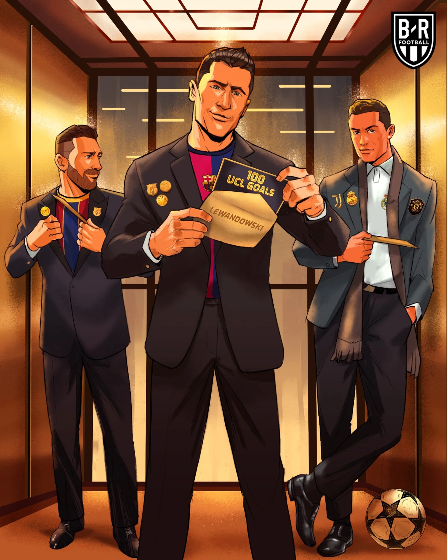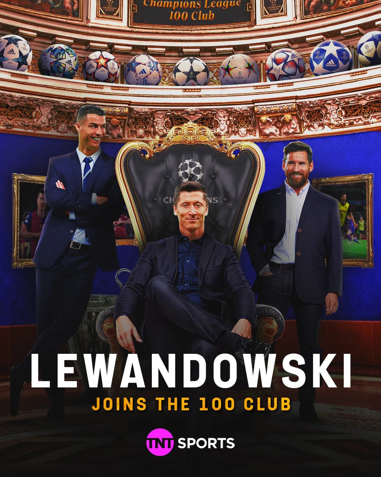 В престижном клубе лучших бомбардиров ЛЧ Роберт в компании Лионеля Месси (129) и Криштиану Роналду (140).