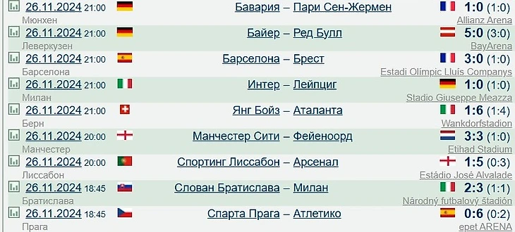 Двадцать шестое ноября 2024 года войдет в историю Лиги Чемпионов. В этот день на групповом (общем) этапе было сыграно девять матчей. В семи матчах из девяти было забито не менее трех мячей, в шести из них – не менее пяти! Рекорд установили «Янг Бойз» и «Аталанта». Действуюший победитель Лиги Европы разгромил в гостях чемпиона Швейцарии 6:1. Нельзя не отметить матч «Манчестер Сити» против «Фейеноорда», в котором хозяева умудрились упустить победу, ведя 3:0.