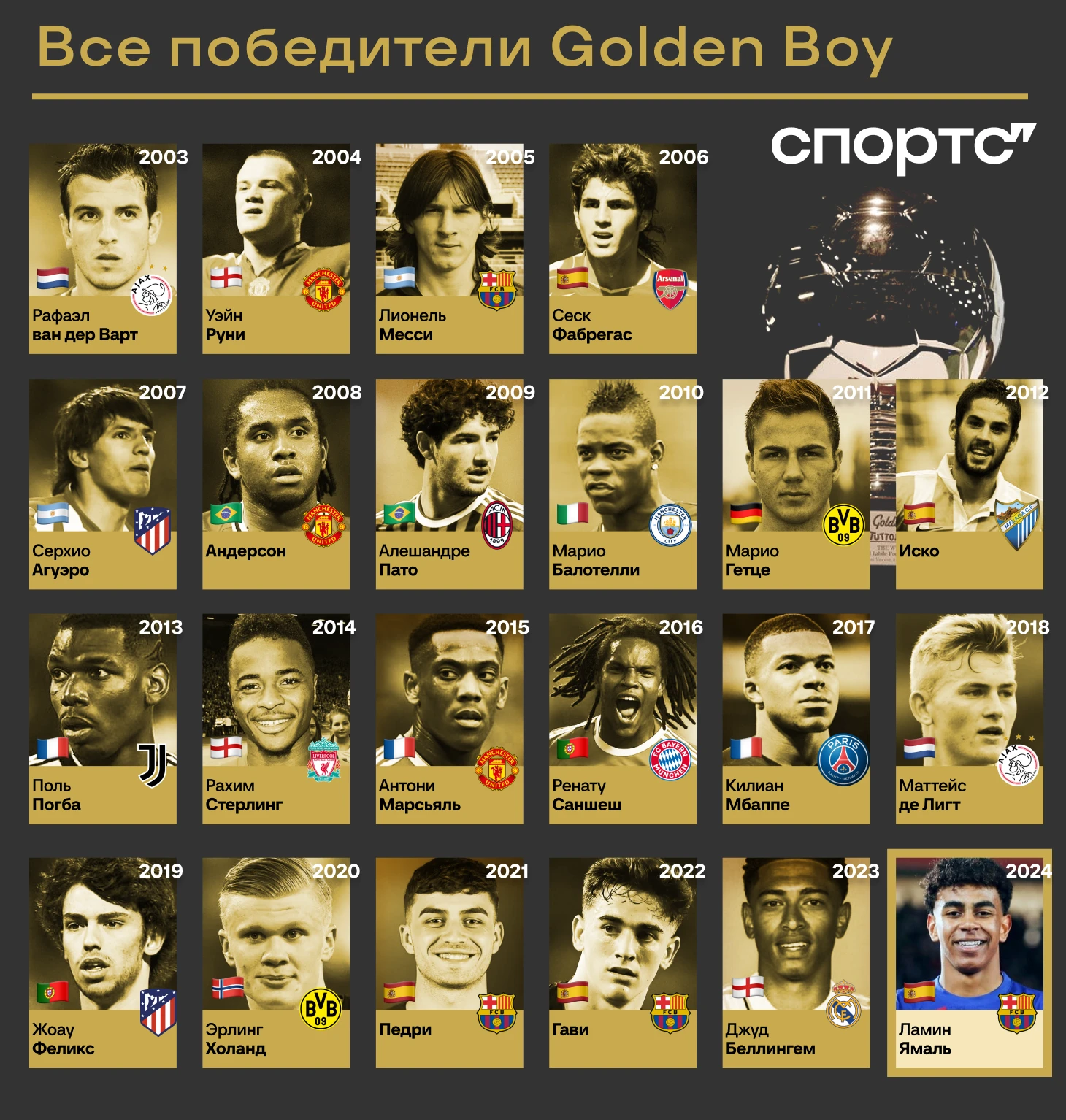 Ямаль – Golden Boy. Уже третий из «Барсы» за четыре года