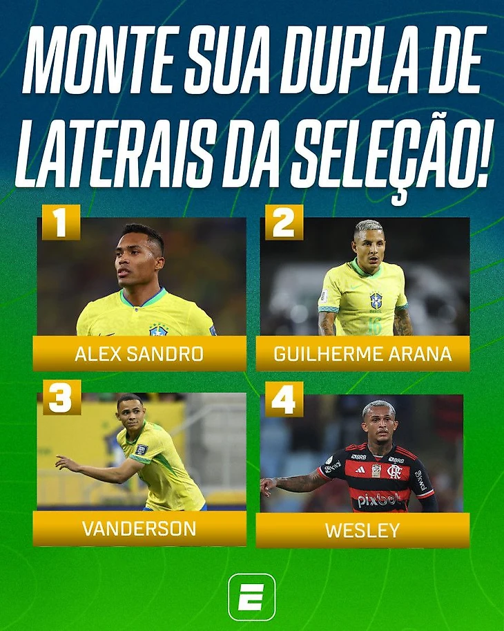 Головная боль уже почти десятилетие. Но при этом и минимально Доривалом вносятся туда изменения (парадокс). Самуэл Лино провел блестяще прошлый сезон в Ла Лиге, став лучшим игроком «Атлетико» Мадрид- ни разу за год не получил вызов, сейчас, будучи на спаде и не играя латераля, попал в расширенный состав. Кайо Энрике, будучи одним из самых стабильных латералей в Европе, вызывался аж при Динизе. Да, этот сезон он проводит на четверку с минусом, при этом успев отдать 4 голевые в 9 матчах с февраля, но, черт побери, он сильнее нынешнего Алекса Сандро, недавно отметившего 34-ый день рождения. Сандро, вызванный на замену Данило, вообще на момент пресс-конференции Доривала провел в 2025 году 2 полных матча. Другие варианты из «списка 52-ух» и того нелепей – Абнер, Теллес и Дуглас Сантос. Абы кто. На этом фоне Ренан Лоди был бы архилогичен. Но даже имея одного стабильного классного латераля в лице Араны, что мешало Доривалу попробовать в качестве его дублера…Вандерсона? Да, Ади Хуттер не раз ставил Ванди на левый край под острого оппонента -Ямаля или Дембеле.