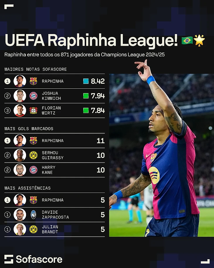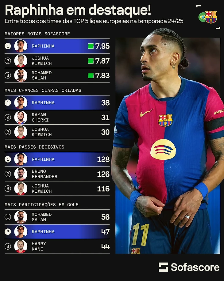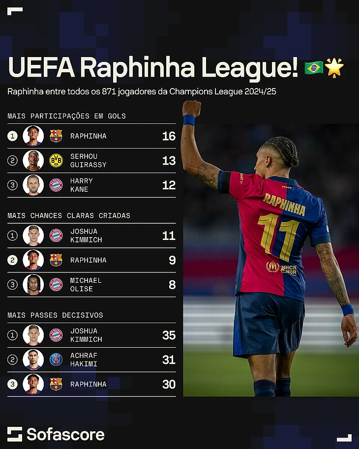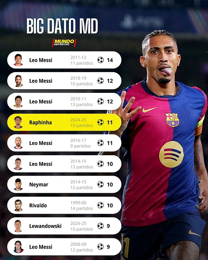 5 голов на звездный мадридский дуэт в 11 играх. Один Рафинья равен им обоим по голевому вкладу.