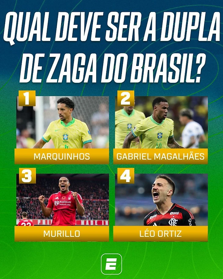 Эта позиция, как и вратарская, наименее проблемная в Селесао. По всем 4 позициям никаких споров и сомнений. Маркиньос и Габриэл хорошо знаком всем и зарекомендовали себя на самом высоком уровне, Лео Ортис без сомнения самый сильный и стабильный защитник Бразилейрао лет последних 4-5. Ну а о Мурилло говорит вся Европа, впрочем как и о его «Ноттингеме», еще в прошлом сезоне стоявшем на вылет, а сегодня идущем в первой тройке АПЛ.
