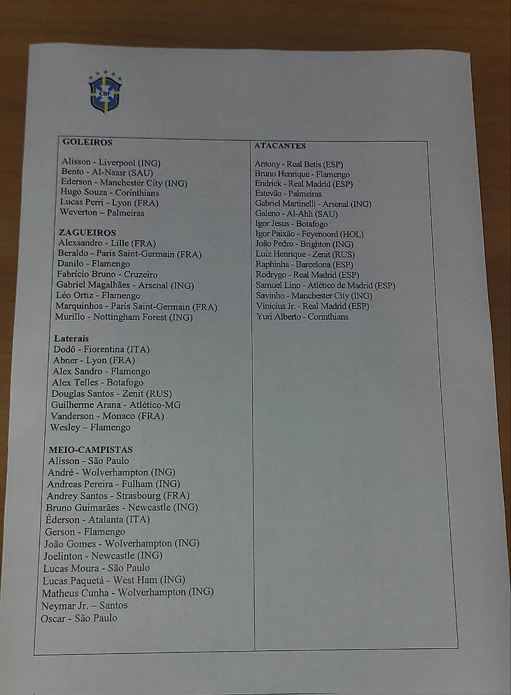 И вот спустя год после дебюта в должности Доривал озвучил состав на мартовские игры отбора с Колумбией и Аргентиной. Сначала неожиданно утек в сеть расширенный состав сборной из 52 имен, и мне поначалу показалось что это фейк. Потому что как-то не верилось, что вот эта вот бумажка, напечатанная на коленке шестиклассником, это и есть документ, отправленный КБФ в ФИФА. В следующий раз вообще списком в Exel отправят, что заморачиваться? Подписав хороший контракт с Найк, КБФ полностью похерила соцсети сборной, куда деньги-то идут?