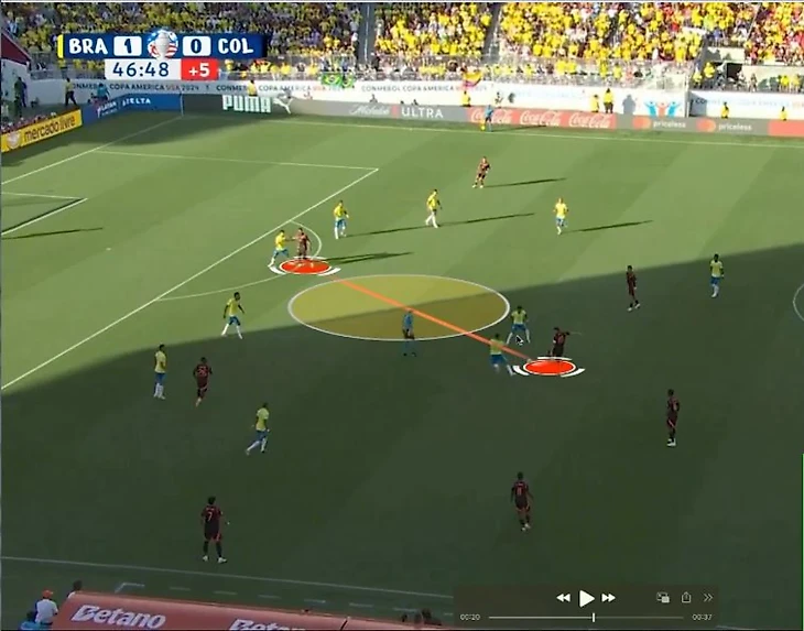 В Бразилии НЕТ ОТЛАЖЕННОЙ ИГРЫ ПРИ СТАНДАРТАХ (то чем гордились и за что вообще не болела голова за 6 лет Тите) и у нее ОТСУТСТВУЕТ ОПОРНАЯ ЗОНА как явление. Это началось не вчера, еще в марте 2024-ого я отмечал это, но тогда это было логично. Дебют как-никак.