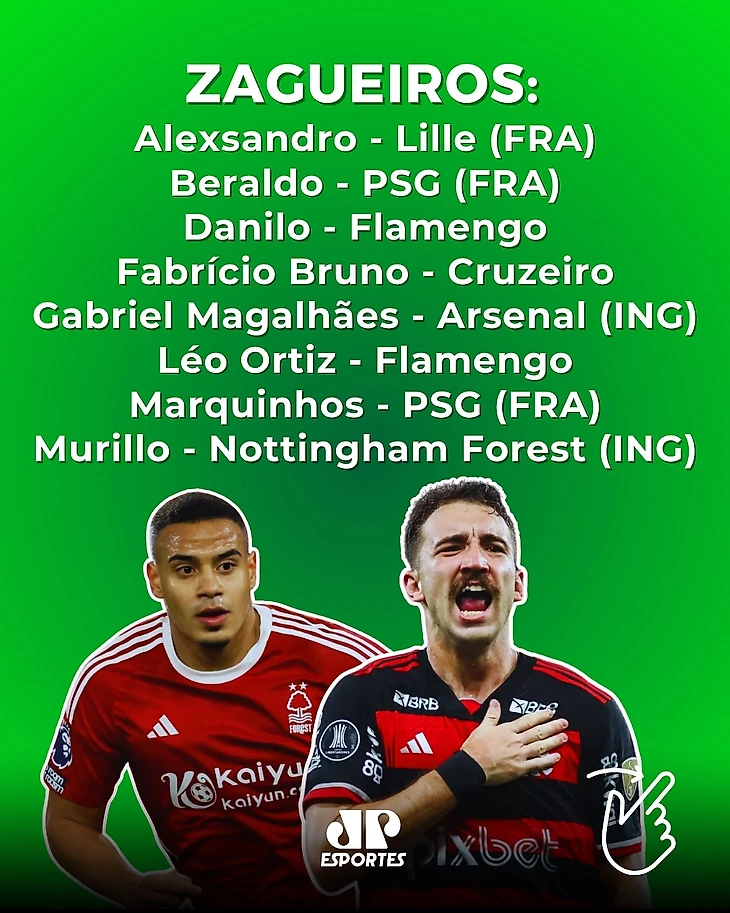 Загейро- Маркиньос (ПСЖ), Габриэл Магальяэс (Арсенал), Мурилло (Ноттингем) и Лео Ортис (Фламенго)