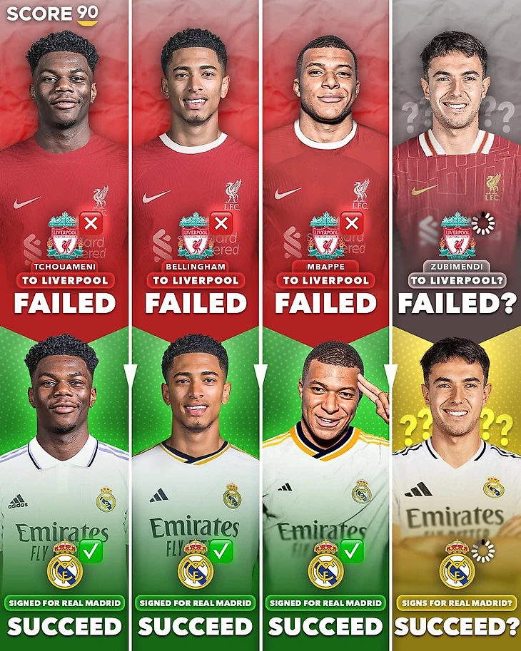 В последние годы «Ливерпуль» уже упустил нескольких ключевых трансферных целей, которые выбрали «Реал»: Орельен Тчуамени, Джуд Беллингем и Килиан Мбаппе. Теперь, по сообщениям испанской Marca, похожая ситуация может повториться в 2025 году с Мартином Субименди – одним из лучших опорников современности.