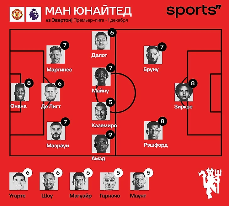 Амад великолепен, Каземиро не хватает физики. Рейтинг игроков «МЮ» в матче с «Эвертоном»