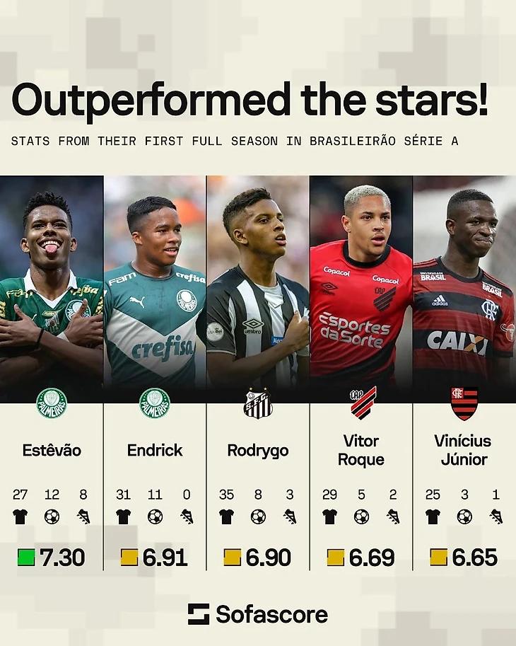 Будем надеяться что дело наживное и Эстевао научится быть более «громким»в важных матчах. Без этого, как впрочем и без целого ряда других факторов и аспектов, ему будет сложно в АПЛ, да и вообще в Европе. Пусть даже последние молодые таланты, рано выпорхнувшие в Старый Свет,не показывали и половины от того, что удалось Эстевао.