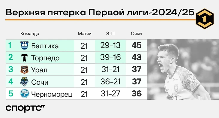 Учитывая, что весной осталось провести всего 13 туров, у «Торпедо» отличные шансы на возвращение в Премьер-лигу напрямую. Отрыв от «Сочи» и «Урала» – уже шесть очков. Забавно, но букмекеры пока не очень верят в московскую команду – дают всего 41% на промоушн.