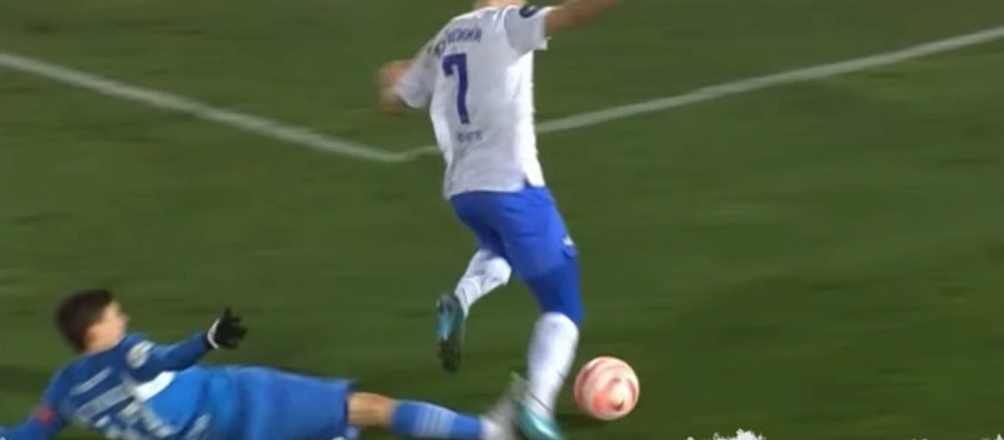 в котором албанец просил пенальти. Скрин сзади доказывает, что босниец в промахе Даку сыграл «как в лучшие годы»: ударить толком не дал, но и правила не нарушил показательно. Но через пару минут Тесленко после подачи штрафного все же забил головой. Правда вопрос по голу к Казарцеву есть: «С каких пор блок, да еще и руками, разрешен»?